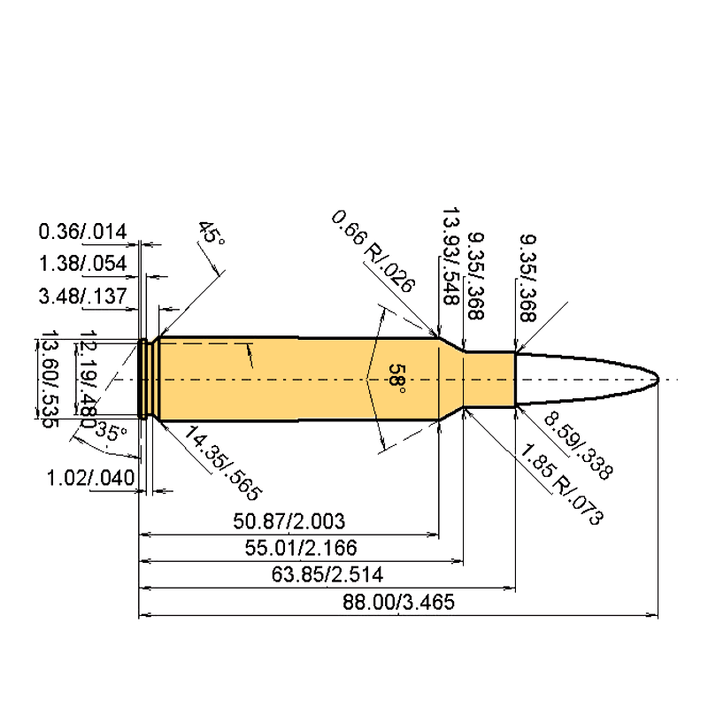 | Diámetro de la Bala: | 0.338 '' | 8.59 mm |